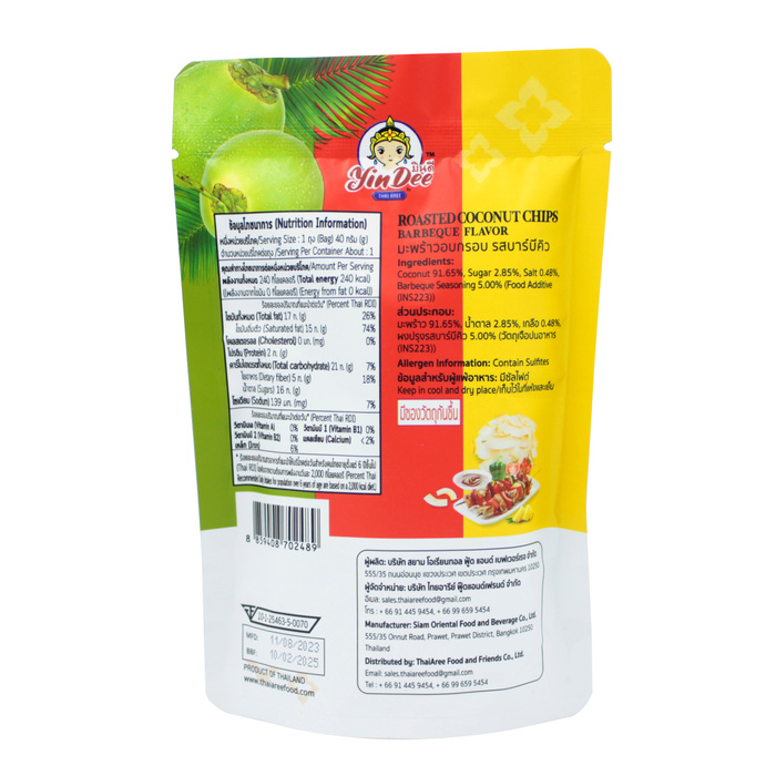 ส่วนประกอบหลัก : มะพร้าว, น้ำตาล. เกลือ, ผงรสบาร์บีคิว
