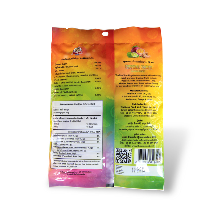 泰国是一个盛产清爽酸甜的热带水果的国家,百香果、罗望子和青柠等水果种类繁多。Yindee品牌将这些独特的风味融入到我们目前在超市销售的糖果中。